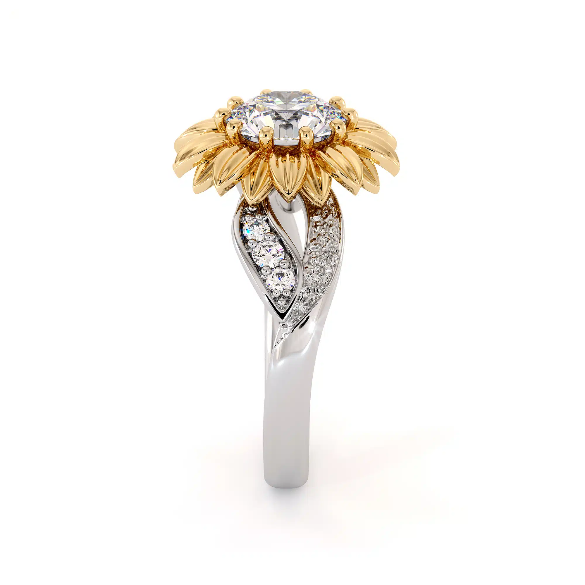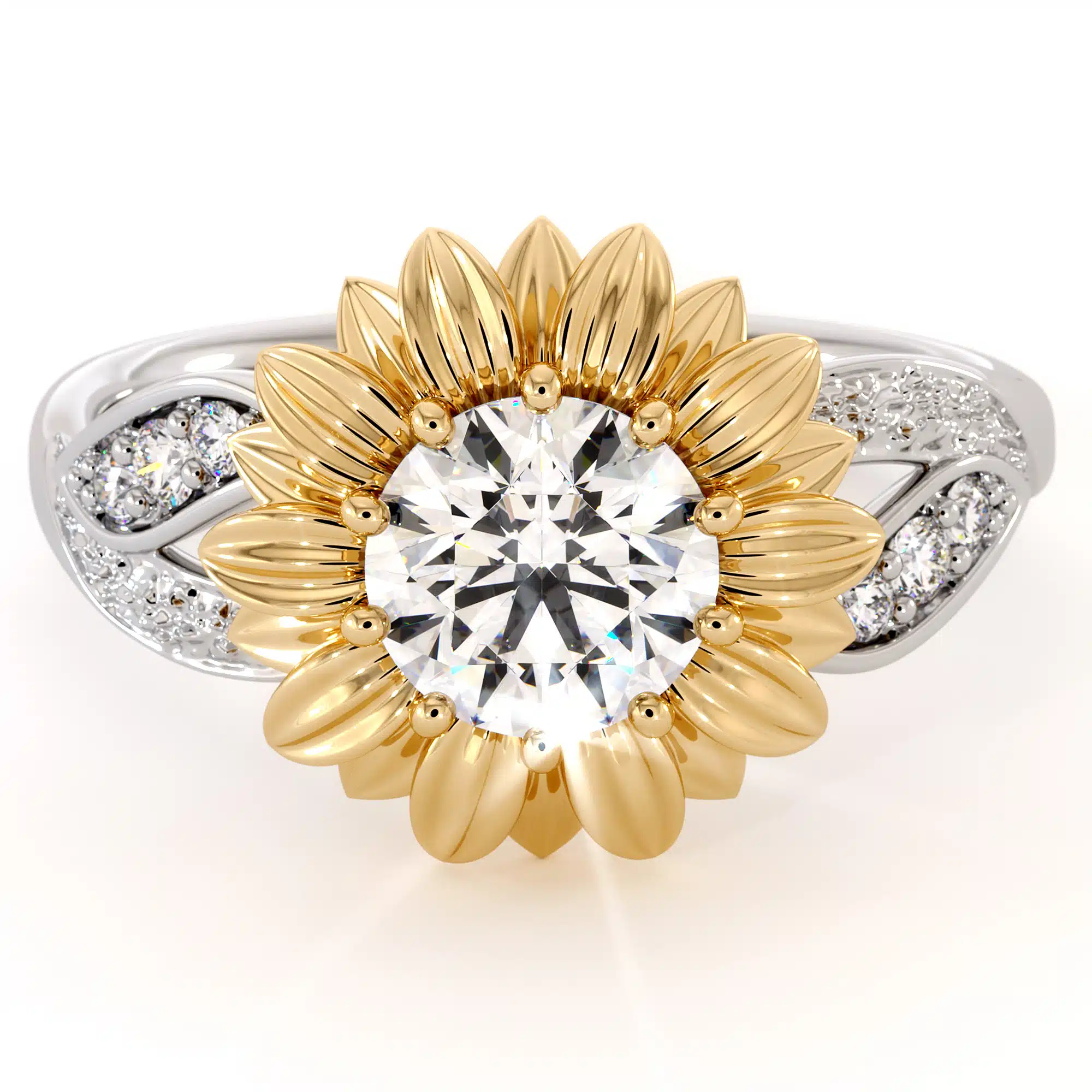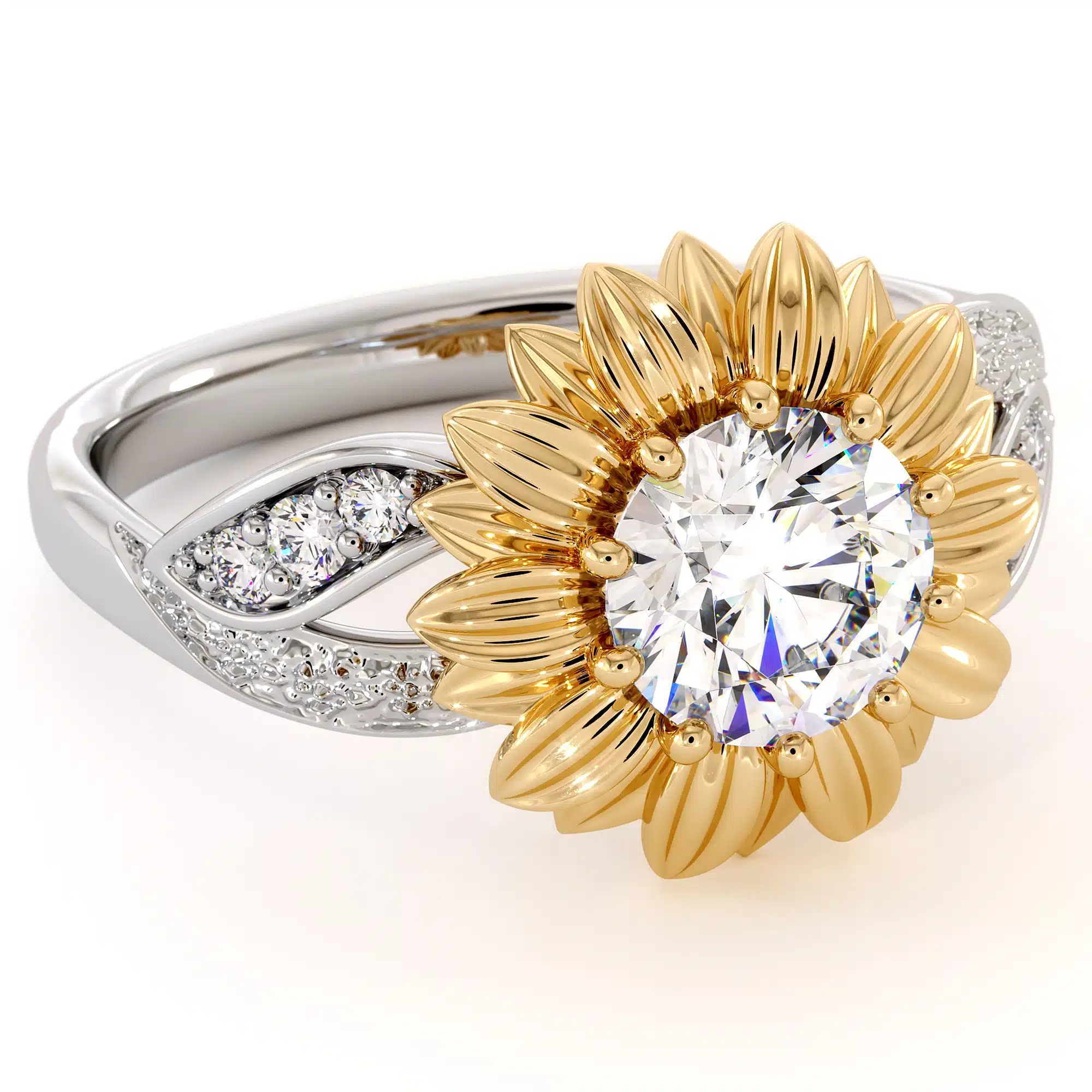 Sunflower Diamond Anniversary Ring with Lab Diamond and Nature-Inspired Design