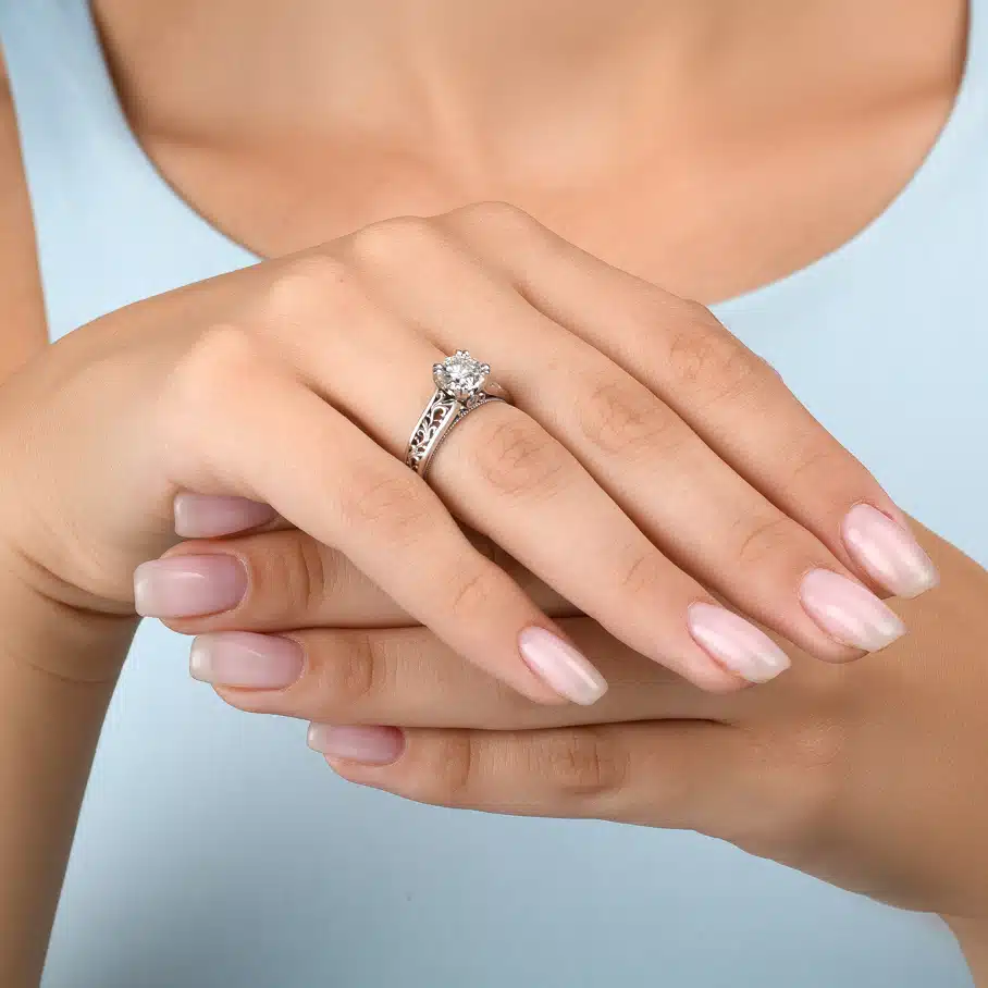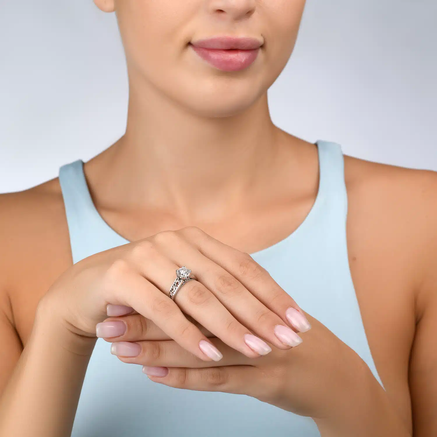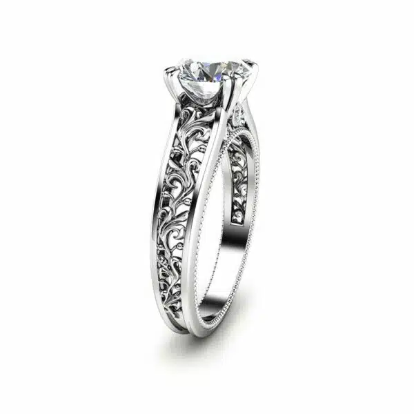 Vintage Floral Diamond Ring with Lab Diamond and Engraved Filigree Band